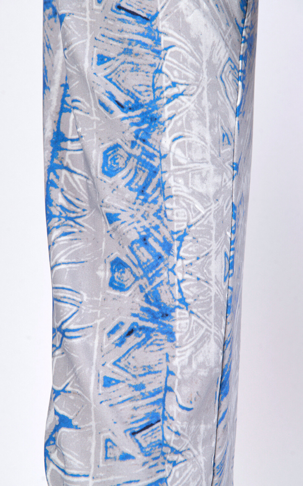 Gray and blue printed pants in stretch fabric