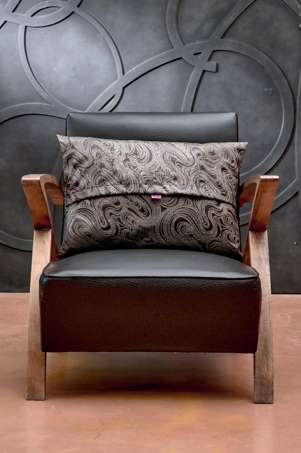 Ce coussin est confectionné en cuir écologique marron associé à des broderies minutieuses avec de délicates paillettes beige. La surface est animée d’inserts brodés à l’effet vieilli, enrichie de huit boutons en zamak couleur cuivre qui accentuent la préciosité du produit. L’inspiration Renaissance florentine se retrouve dans le choix des motifs et des matériaux, faisant de chaque modèle un élément unique et distinctif, capable d’apporter chaleur et originalité aux espaces domestiques.