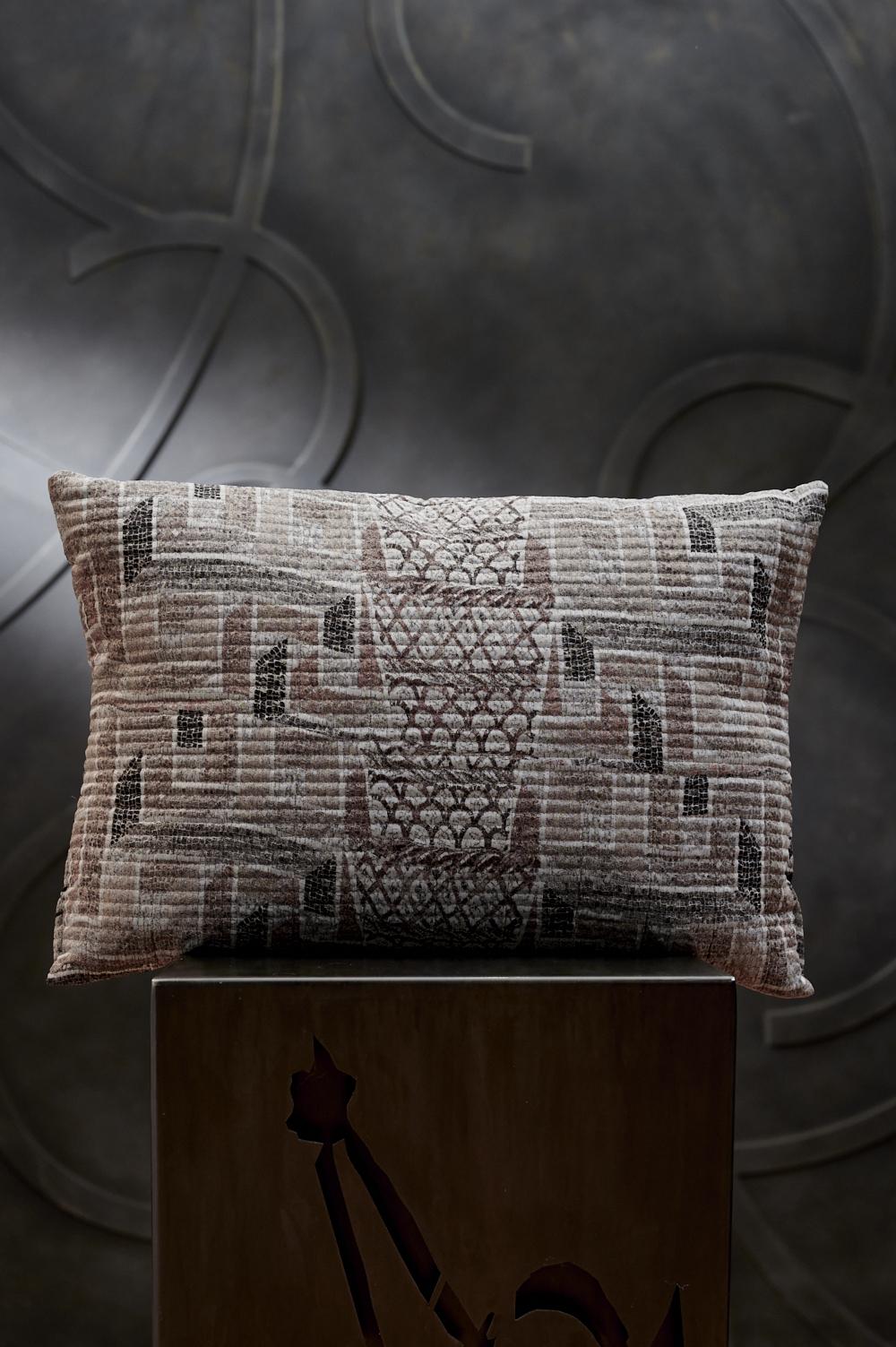 Un magnifique ensemble de décoration composé d’un élégant chemin de table réversible, de deux coussins rectangulaires et de deux coussins carrés.