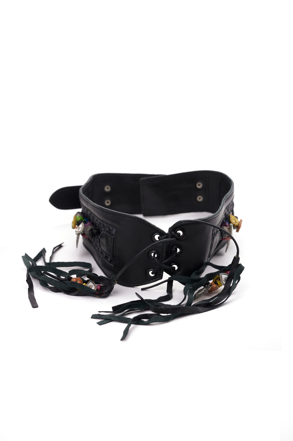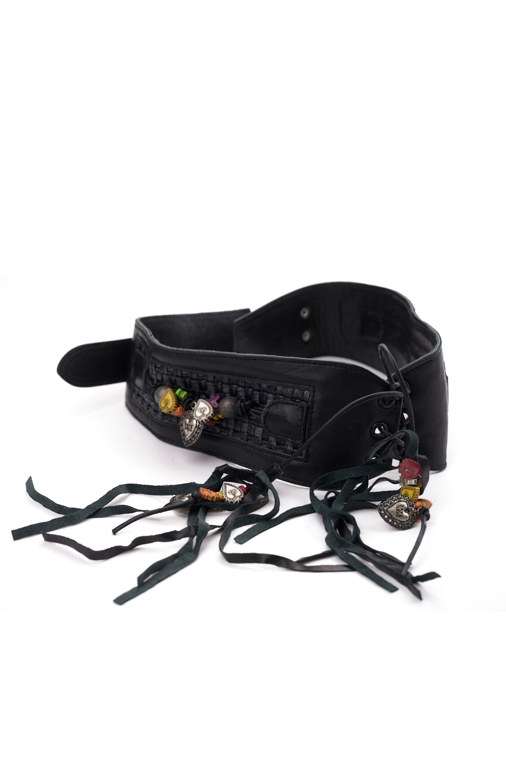 Cintura nera in vera pelle con decorazioni