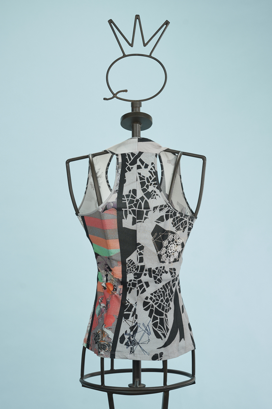 Un top in cotone elasticizzato stampato con un disegno esclusivo Save The Queen! nei toni del nero, grigio, panna con tocchi di arancio e rosso. Scollo all’americana.