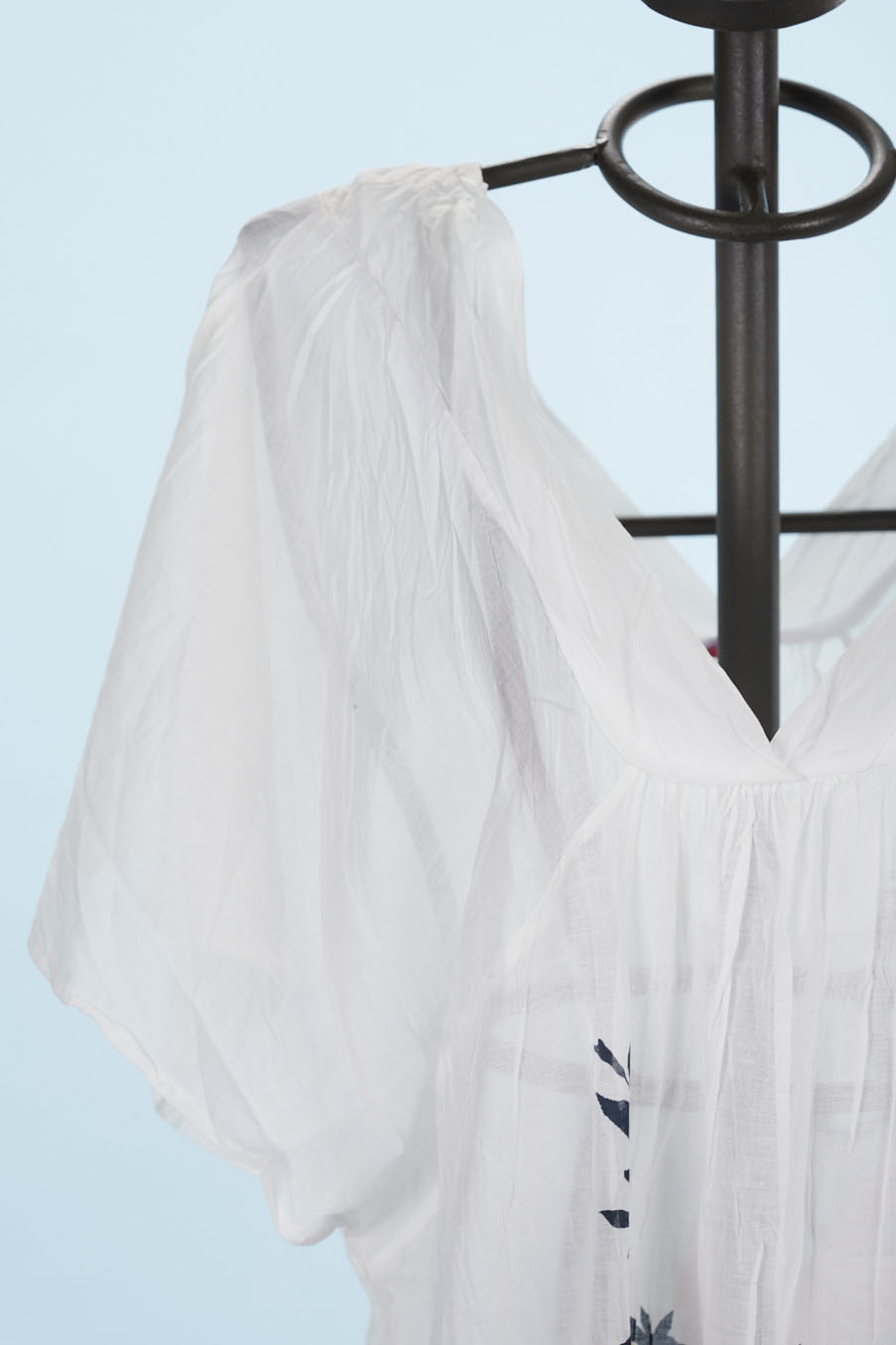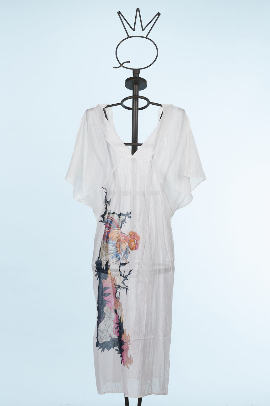 Una tunica lunga in cotone bianco stampato con un disegno esclusivo Save The Queen! Maniche a pipistrello e scollo a V.